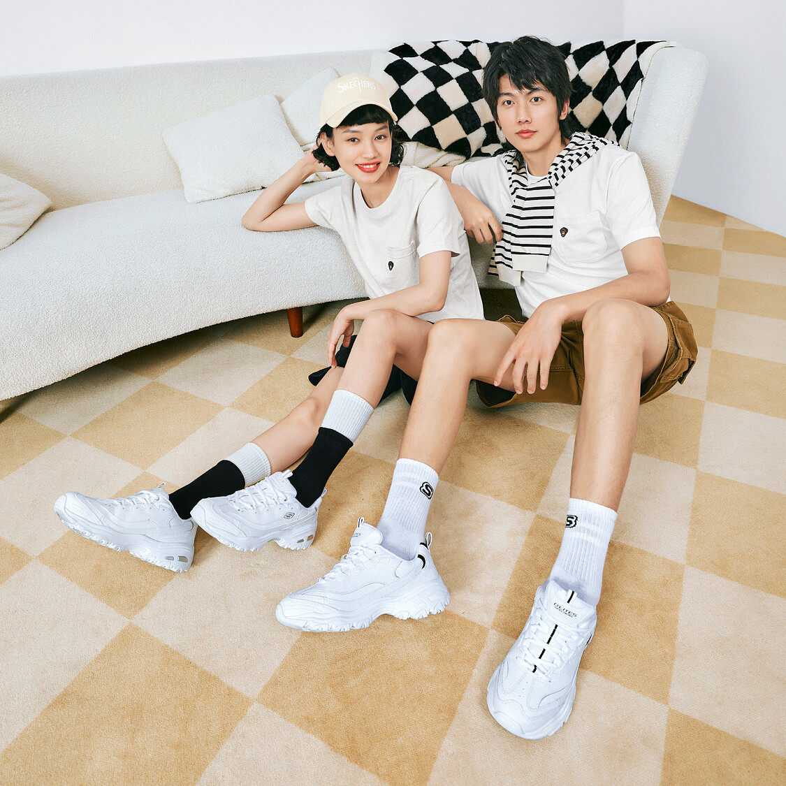 经典 情侣鞋 小白鞋 老爹鞋 斯凯奇春季 透气舒适增高运动鞋 男女新款