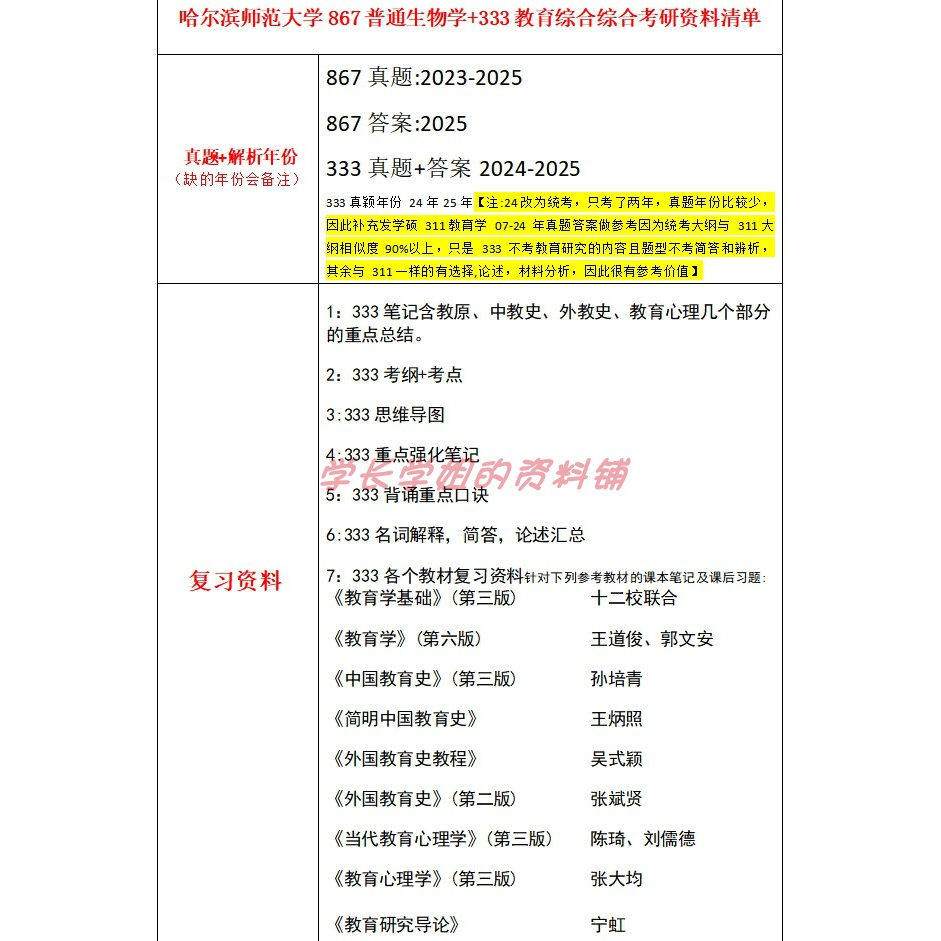 2023 原907 2025年考研真题答案资料详情 哈尔滨师范大学研究生考试867普通生物学 新版