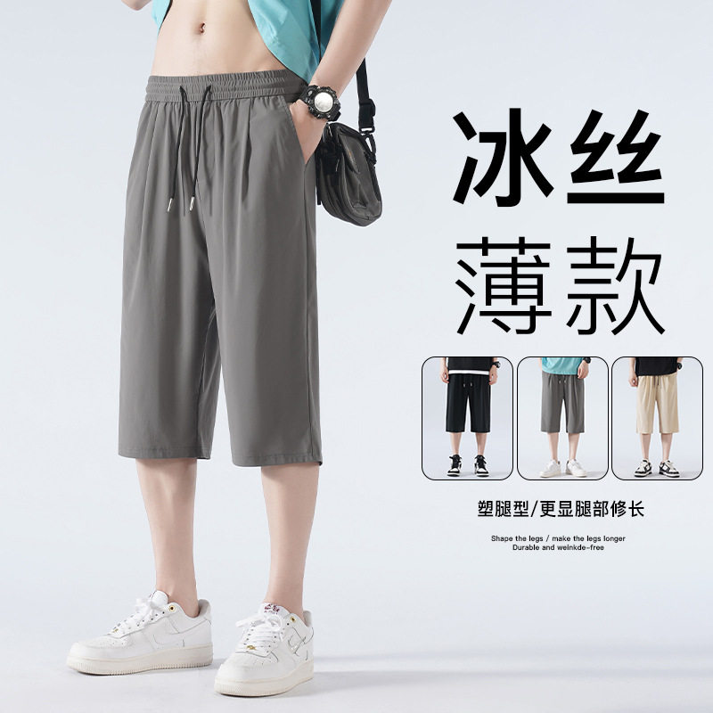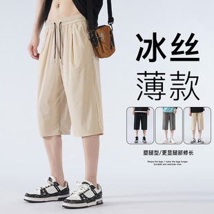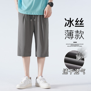 七分裤 冰丝男士 港风宽松透气弹力运动直筒7分 新款 进口2025夏季
