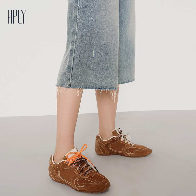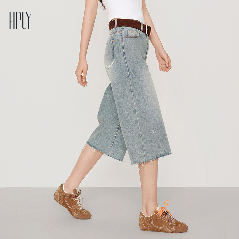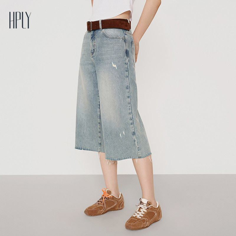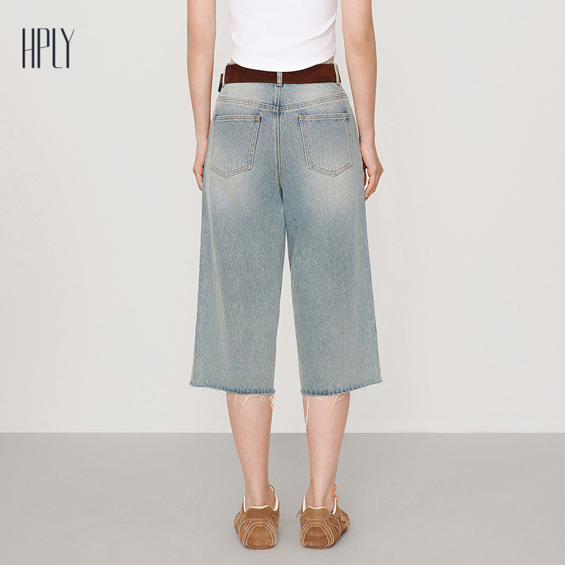 「牛仔有型」HPLY荷比俪2025秋新款 女复古水洗阔腿休闲7分牛仔裤