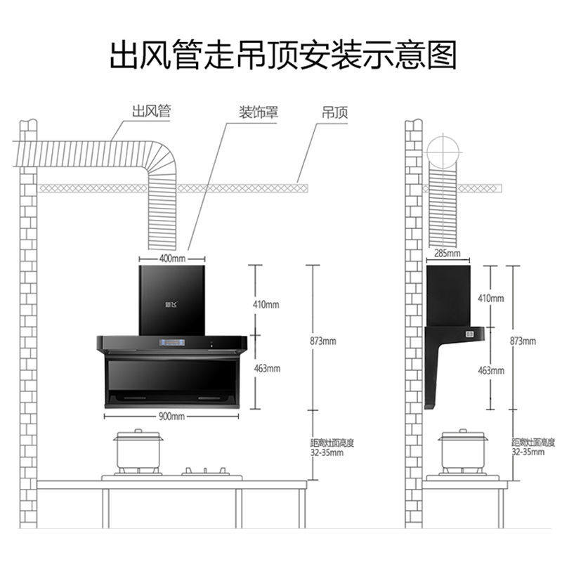 新飞7字型油烟机家用厨房大吸力顶侧双吸式 脱排抽油烟机