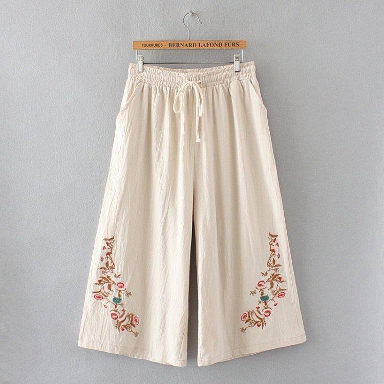 女装 大码 宽松休闲裤 女高腰显瘦刺绣阔腿裤 2025夏季 女七分裤 新款