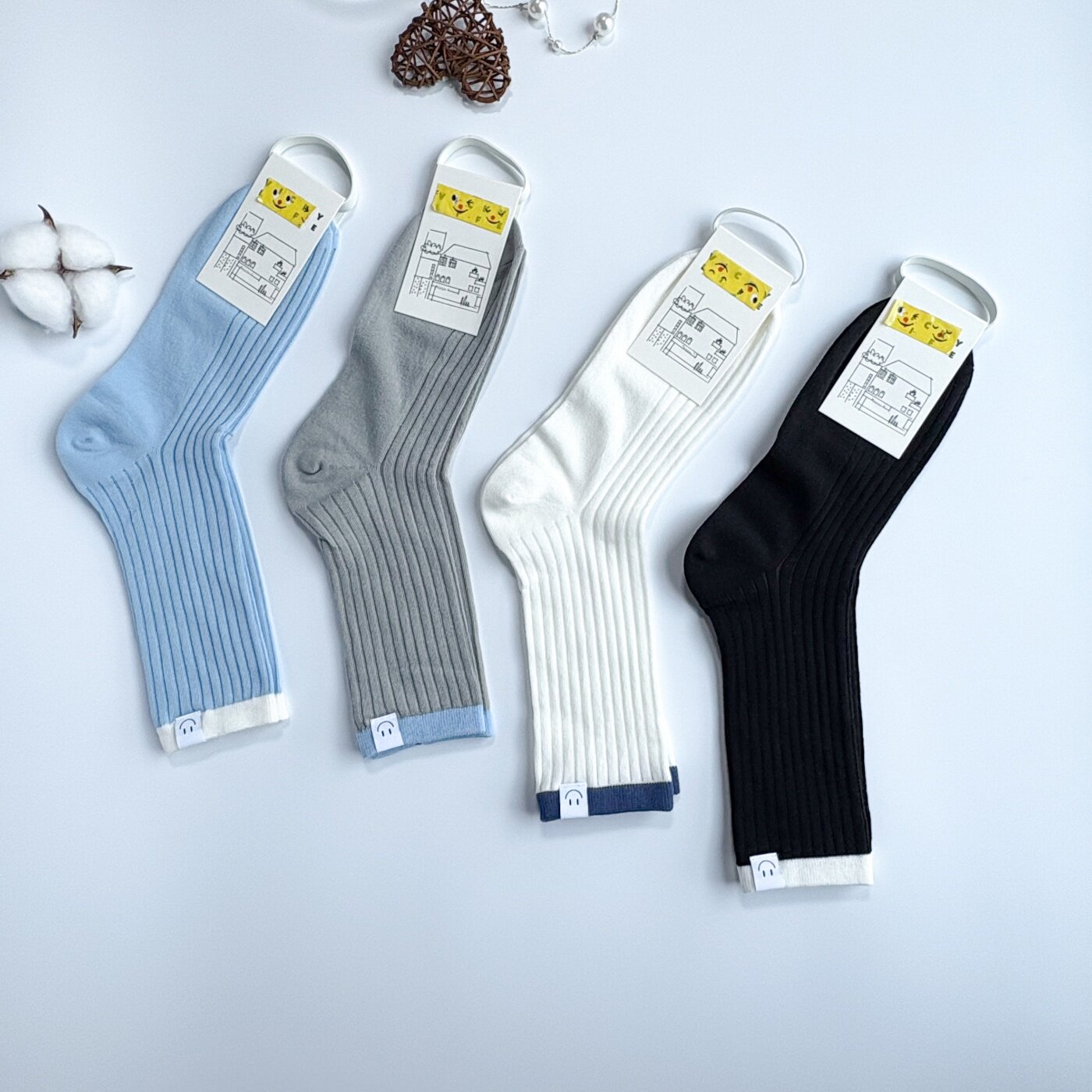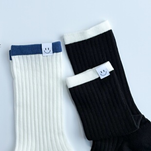 日韩潮袜轻奢中筒袜薄款 布标学院风棉袜8537 透气吸汗质感笑脸个性