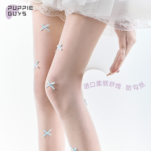 袜 不掉档jk美肤打底连裤 purpleguys蓝色蝴蝶结白丝袜少女夏季 薄款