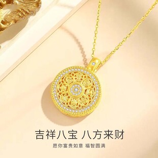 古法八宝罗盘纯实心高端沙金吊坠网红镶钻旋转项链仿真黄金不掉色