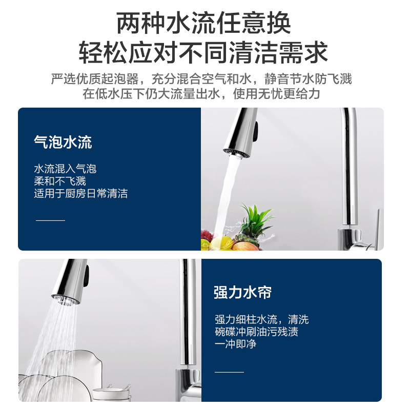 不锈钢厨房水龙头冷热水洗菜盆洗碗池水槽抽拉式 防溅单冷家用全铜