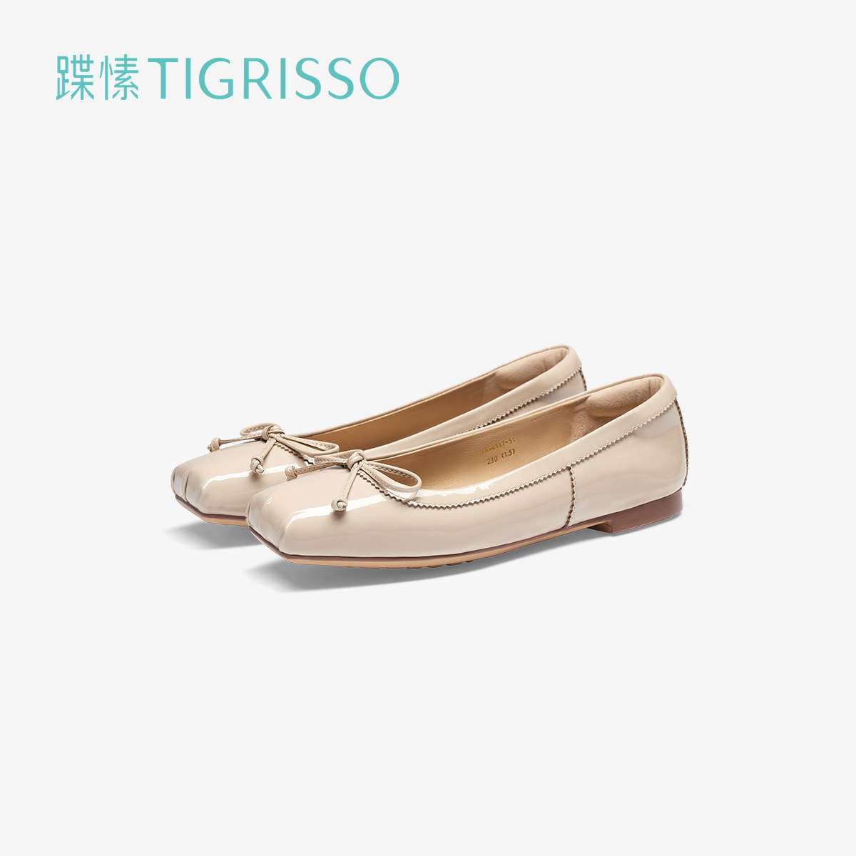 TA54117 蝴蝶结芭蕾风平底鞋 法式 蹀愫红色复古单鞋