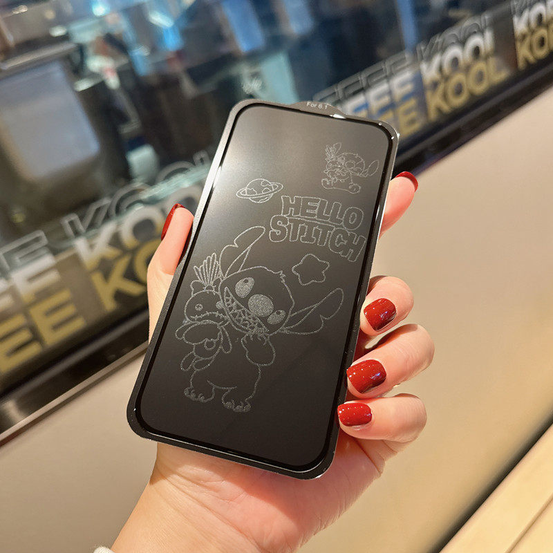 Max屏幕玻璃贴膜14 XS可爱玉桂狗13pro卡通全覆盖15Pro 史迪仔适用苹果16息影钢化膜iPhone11隐形手机膜12
