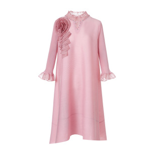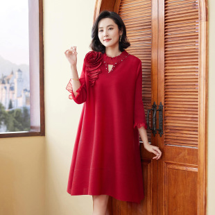 高端刺绣立体花朵连衣裙2026早春新款 A字裙 洋气妈妈礼服宽松大码