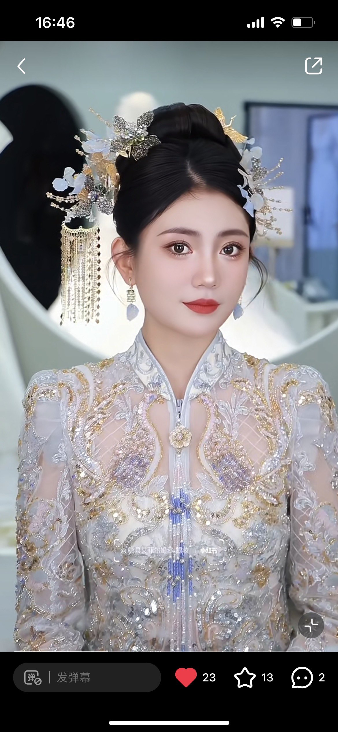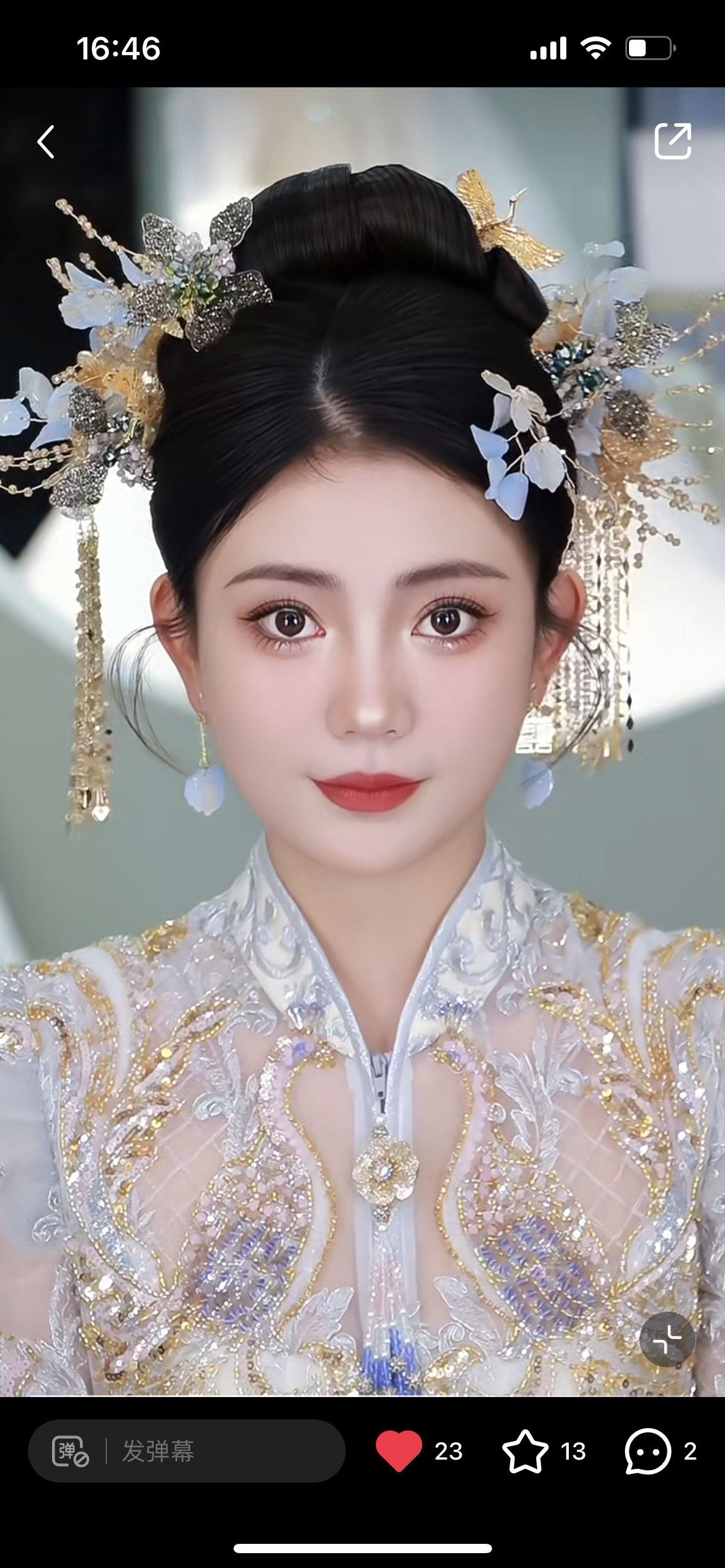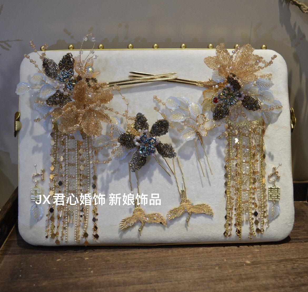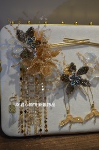 蝴蝶发夹红色山茶花旗袍古风配敬酒服中式 簪子发饰新娘头饰