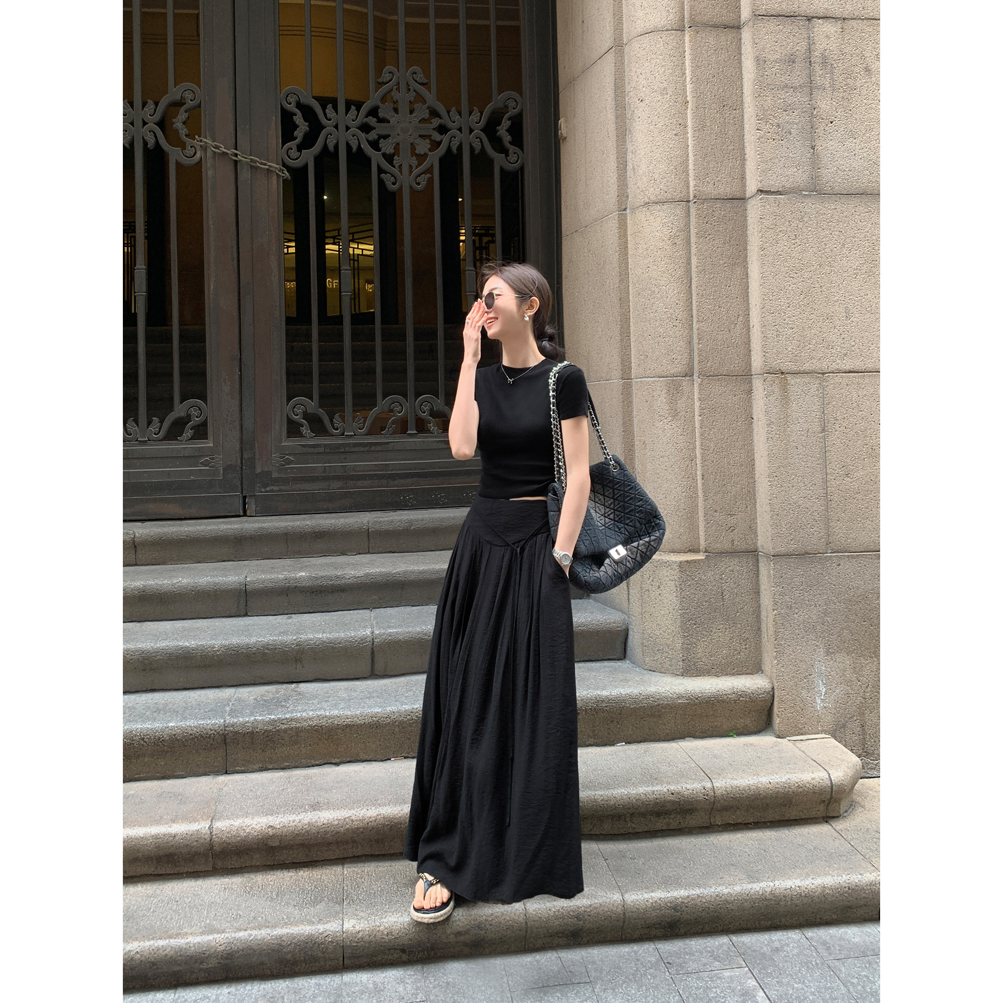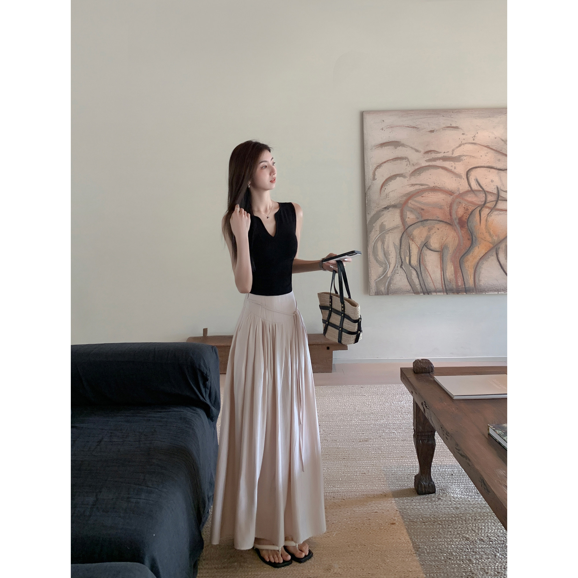 MULVAN 高级垂坠感伞裙显瘦气质A字长裙 设计感高腰半身裙女夏季