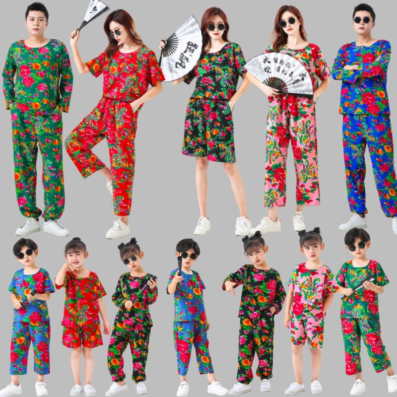 东北大花布衣服男女伴娘晨袍闺蜜生日聚会搞笑姐妹装 年会演出套装