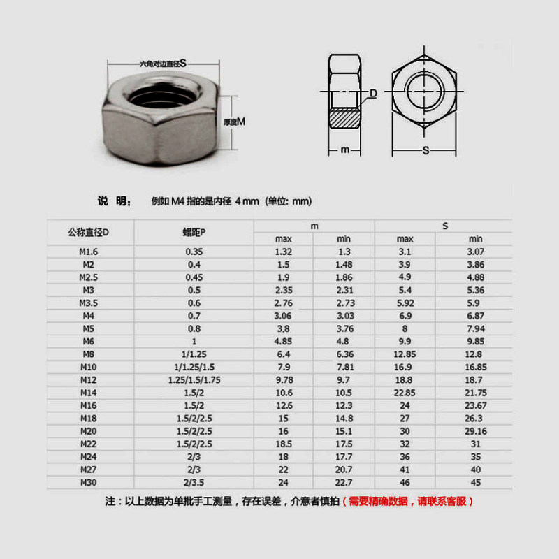 304不锈钢六角螺母螺帽六方螺丝帽大全M3M4M5M6M8M10M12M16M20M24