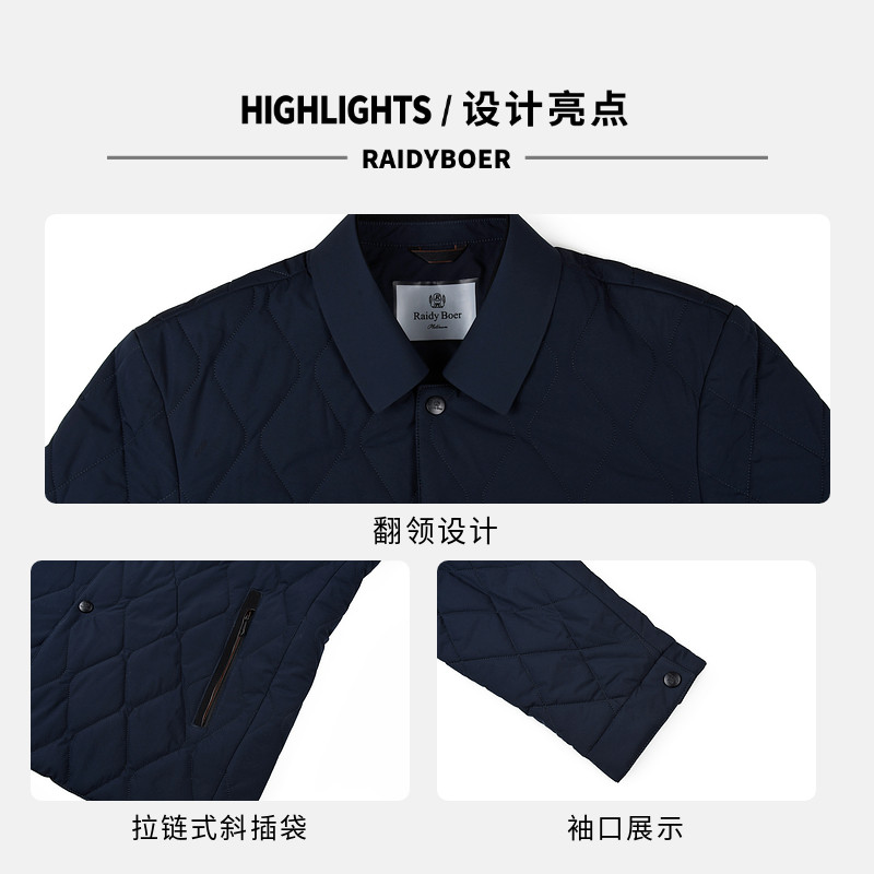 Boer Raidy 雷迪波尔秋冬男翻领简约棉衣外套4020 桑蚕丝填充