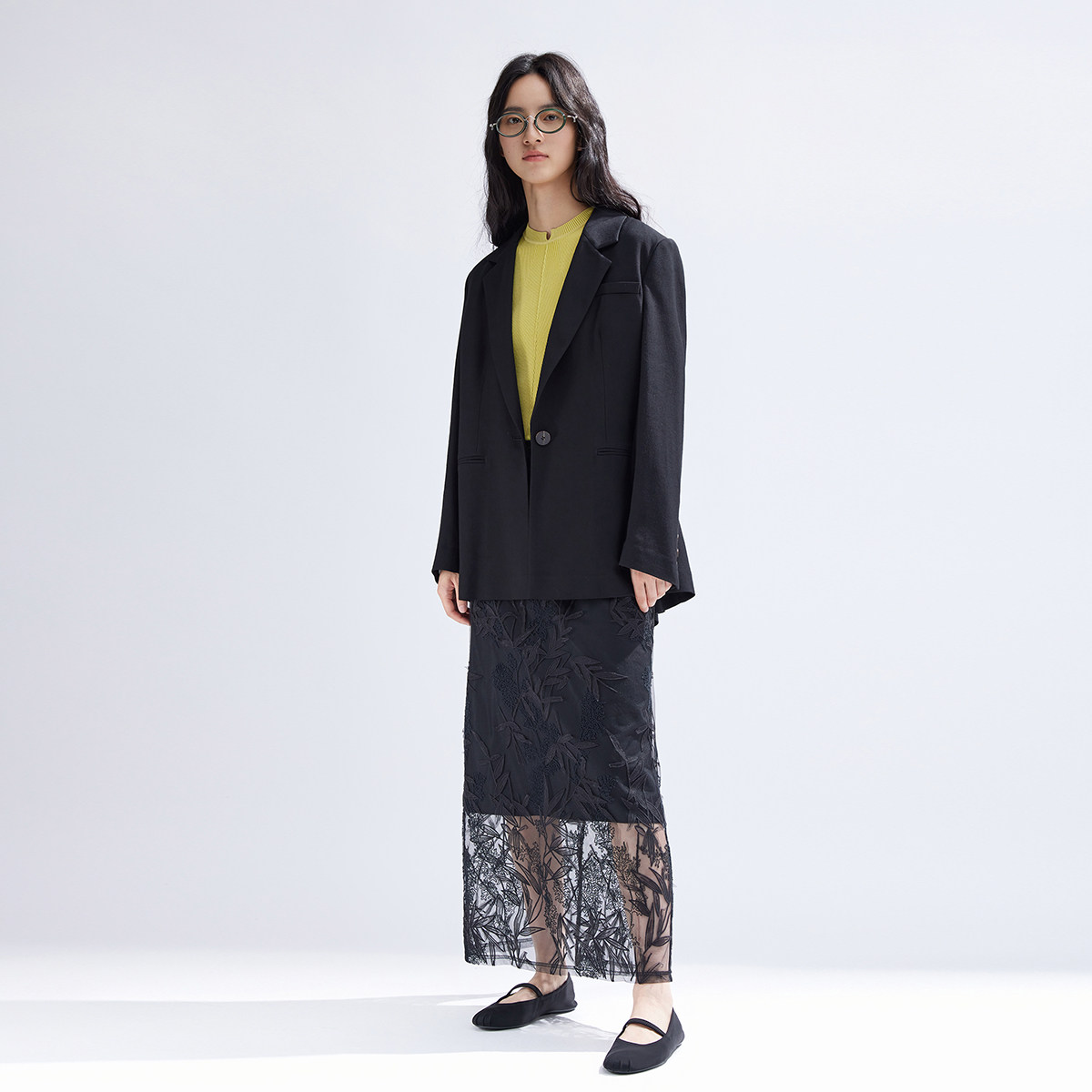 ELI 真丝羊毛混纺平驳领釉面牛角扣休闲西服外套男春秋 杜松