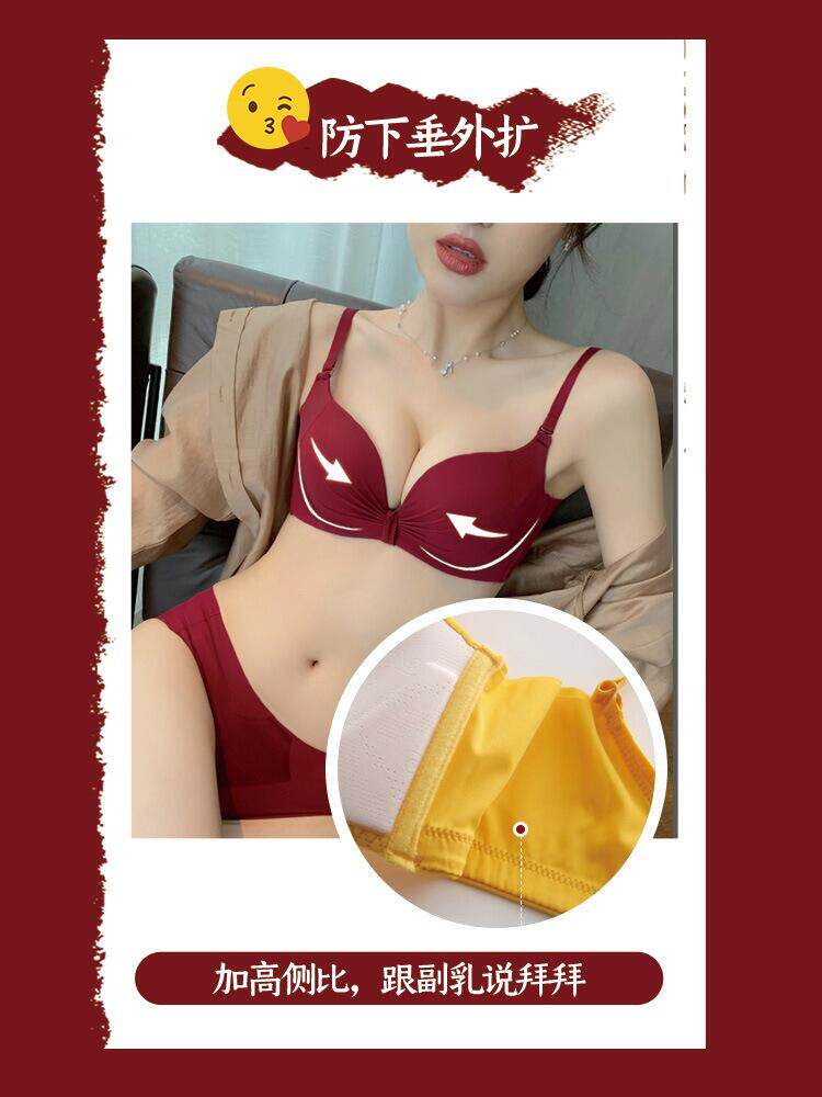 UMA MARA本命年内衣女小胸聚拢上托红色无钢圈无痕收副乳文胸套装
