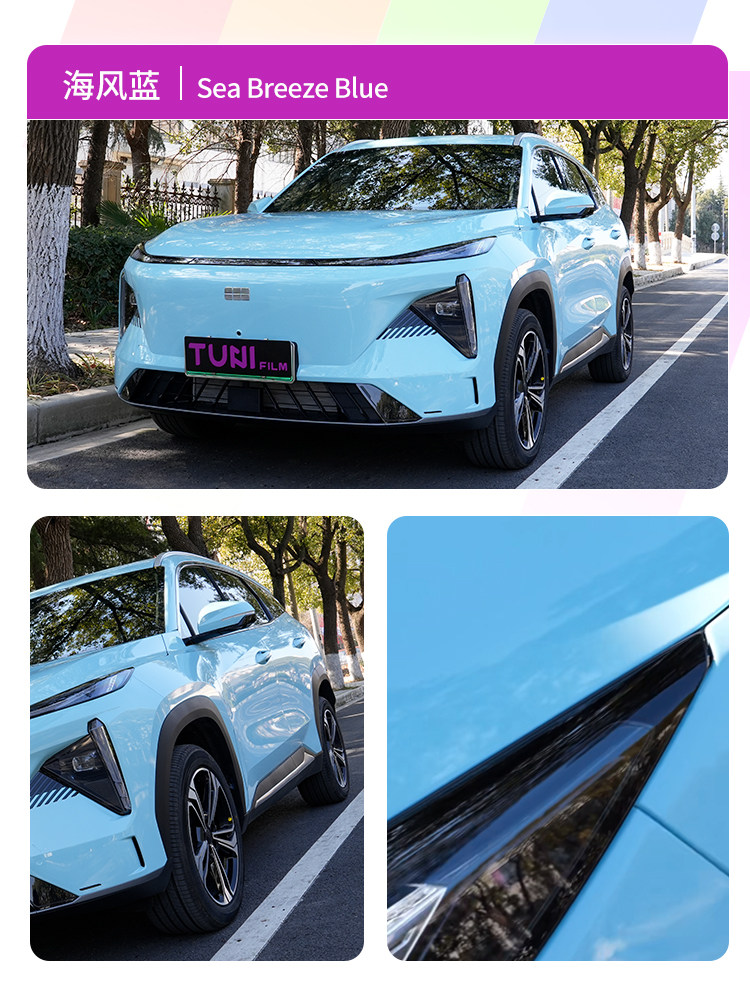 途霓马卡龙pet车衣膜汽车改色爵士蓝月光玉牛油果绿全国包贴装