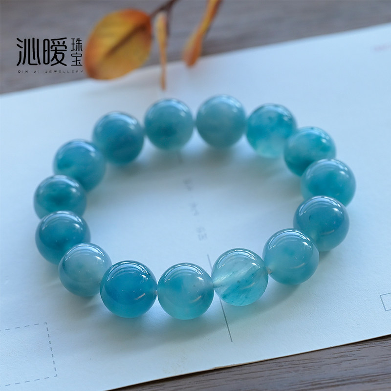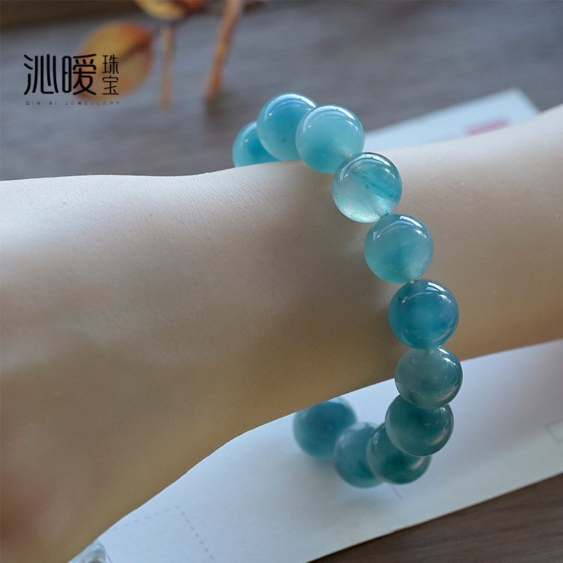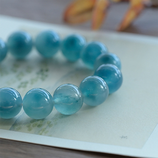 蓝水手串冰飘花翡翠色石英岩玉手链文玩配饰单圈男女款 似翡翠手链