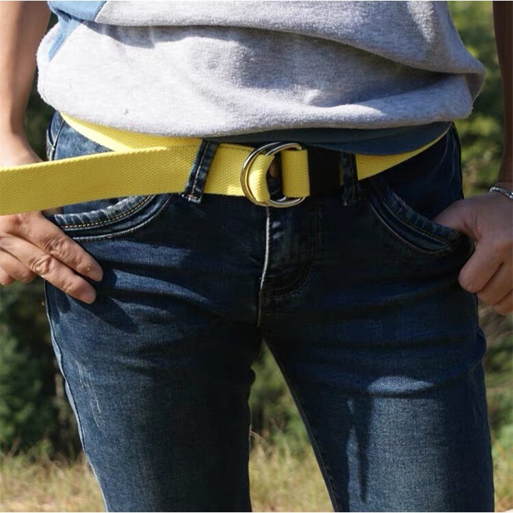 宽牛仔裤 男士 带大码 双环扣D帆布腰带彩色超加长休闲裤 皮带蓝 女款