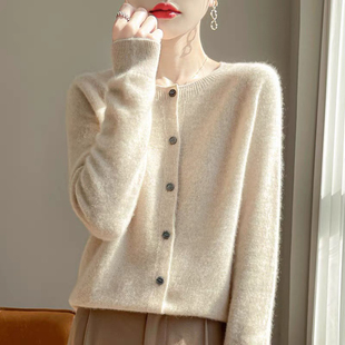 无缝圆领针织开衫 高货 230g加厚拉绒羊毛羊绒衫 捡漏 毛衣女 反季