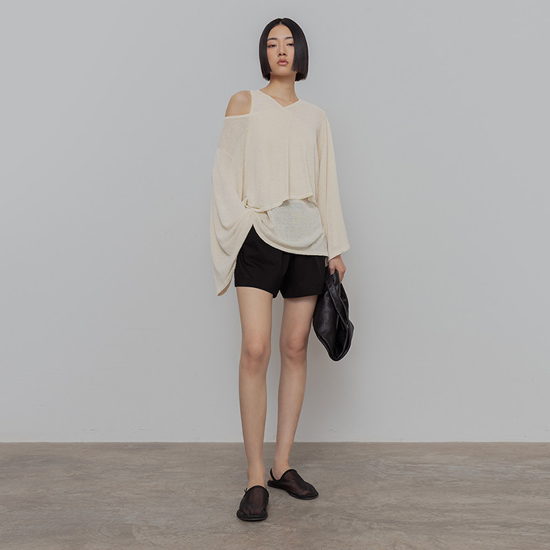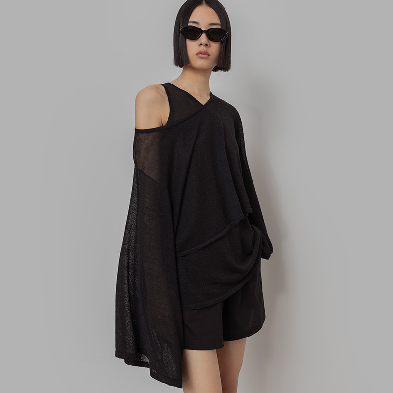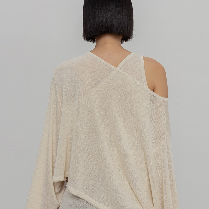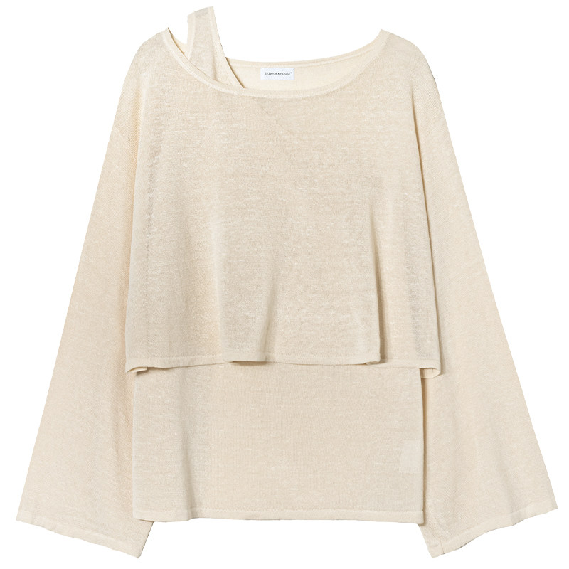 B378 春秋斜肩垂感透视叠穿针织衫 322WORKHOUSE长袖 上衣女2025新款