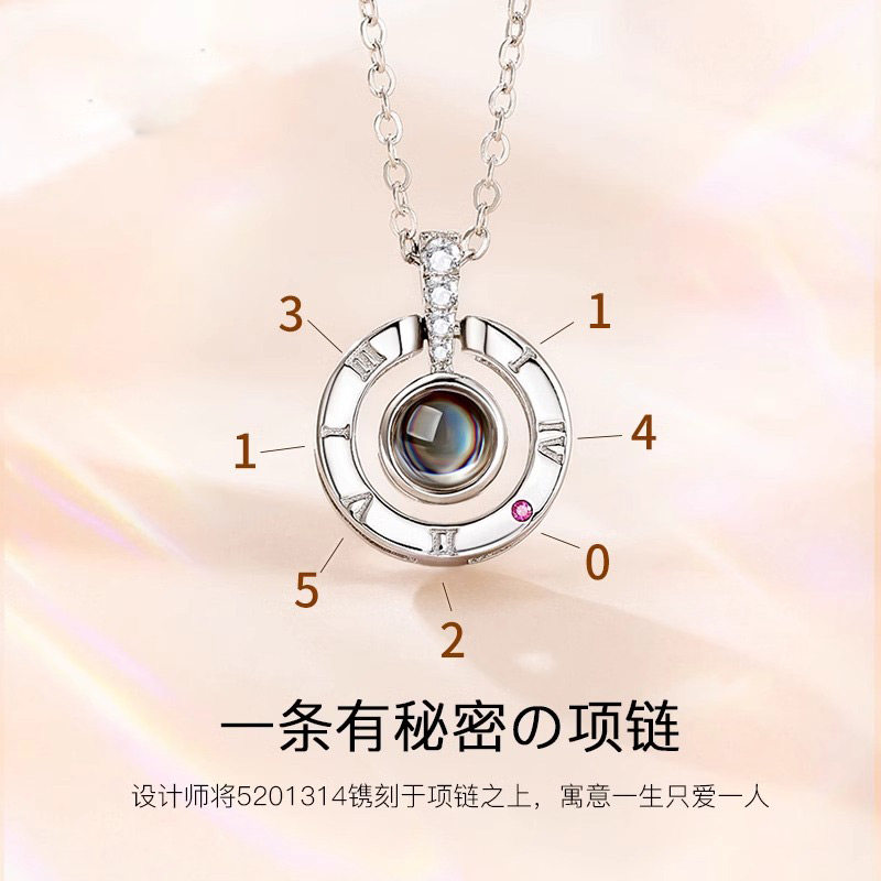 爱 记忆项链女银投影吊坠100种我爱你生日情人节礼物送女友老婆