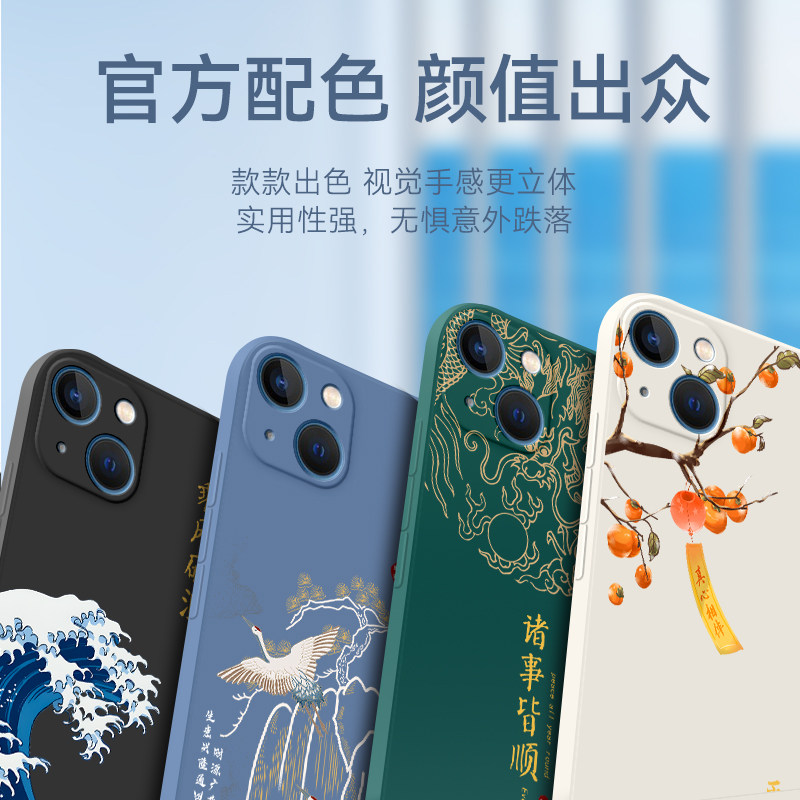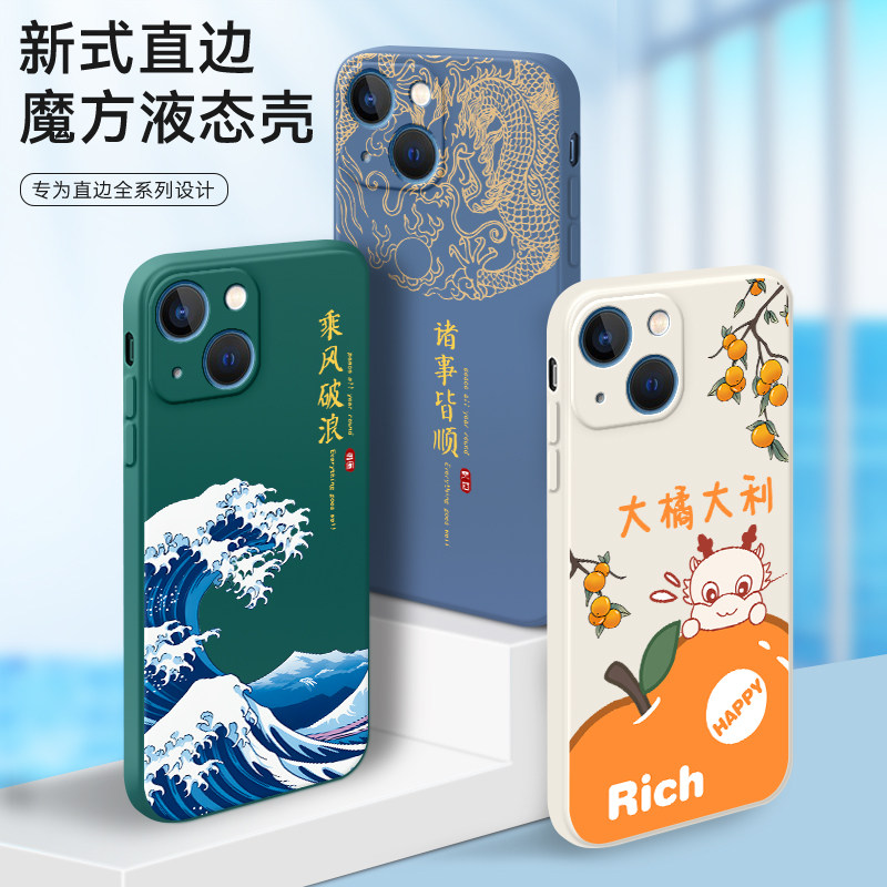 适用苹果13直边手机壳a2482镜头全包a2631卡通财神a2633国潮风a2634保护套a2635防摔外壳 iphone13软硅胶男女