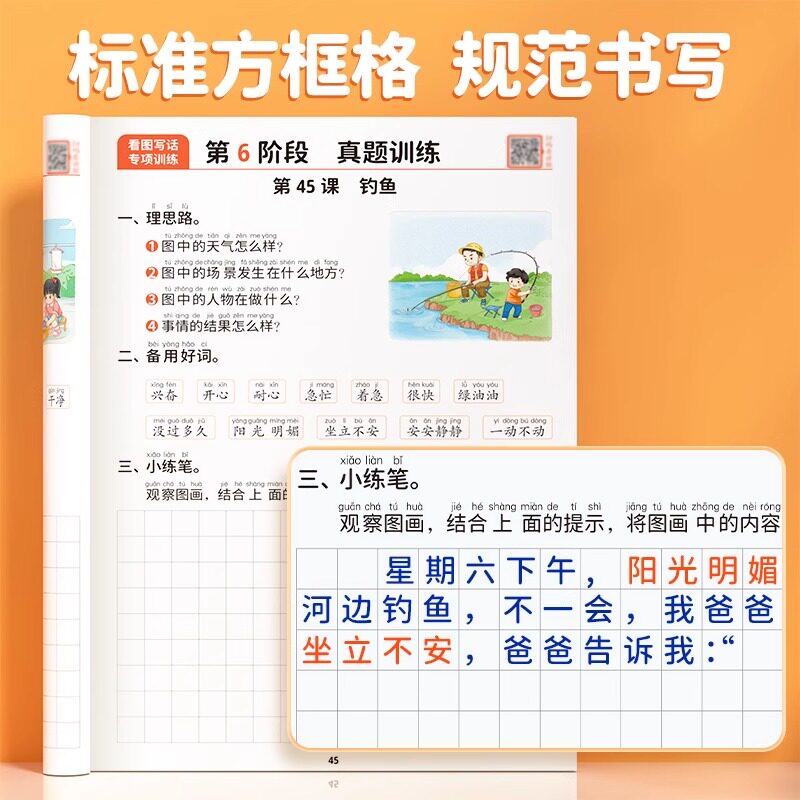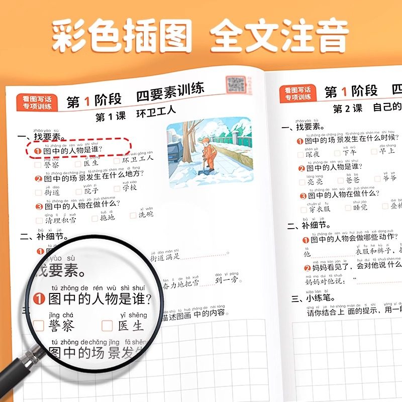 看图写话一年级专项训练二年级一二年级小学生每日一练人教版 上册下册下学期上一填词组句训练素材积累范文大全一升二衔接册斗半匠