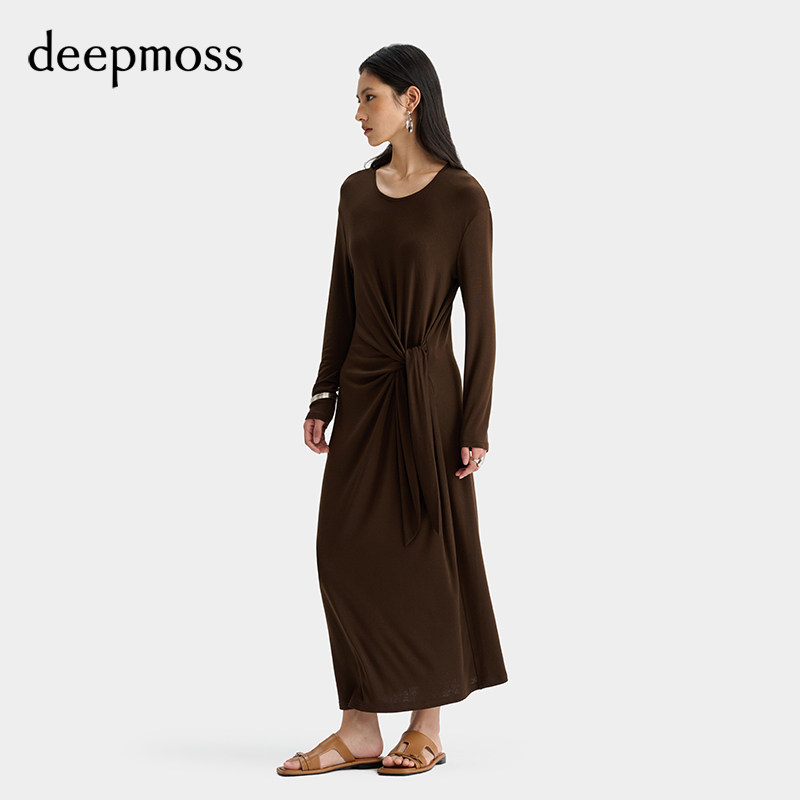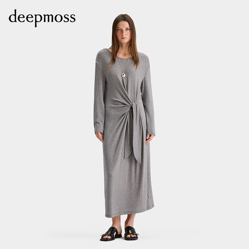 时尚 优雅复古潮流女装 休闲气质斜裁堆叠针织连衣裙 deepmoss