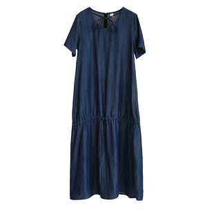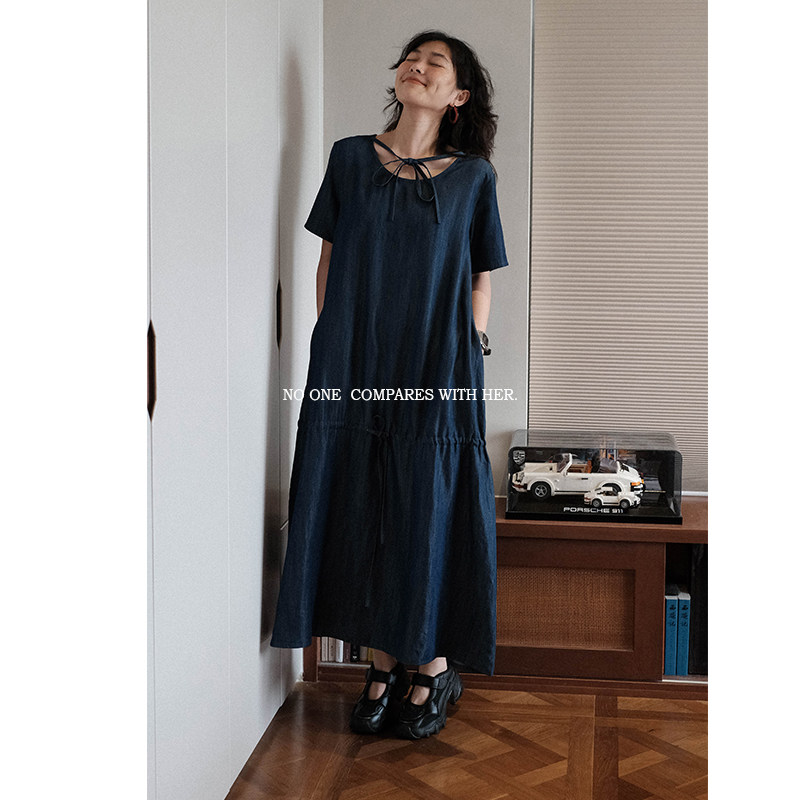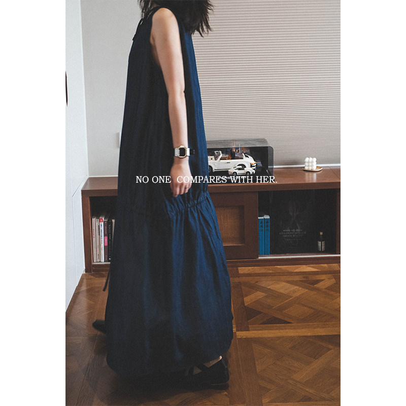 垂顺连衣裙长裙 无袖 与她原创小众设计 系带天丝牛仔宽松简约短袖
