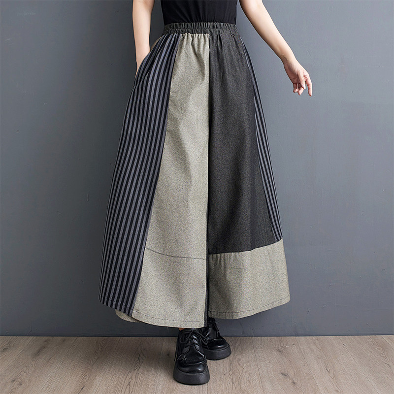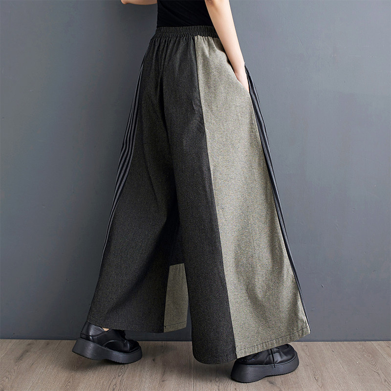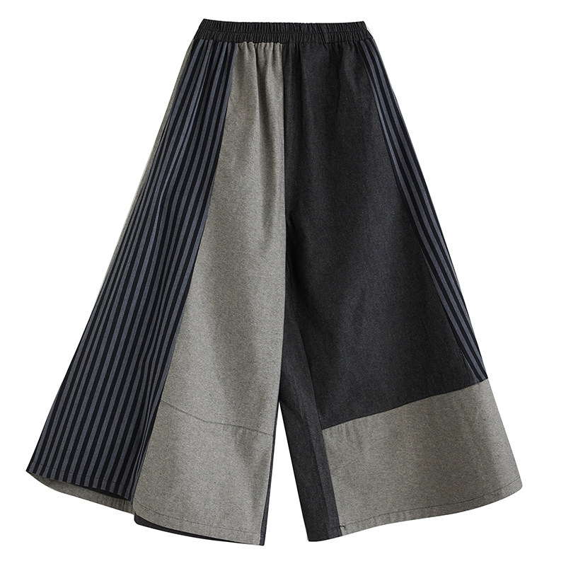 直筒阔腿裤 夏装 百搭时尚 小众牛仔拼接休闲裤 女松紧腰胖mm加大 新款