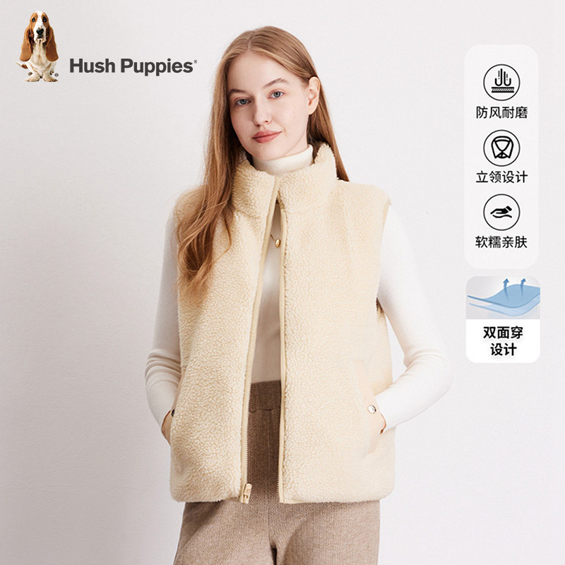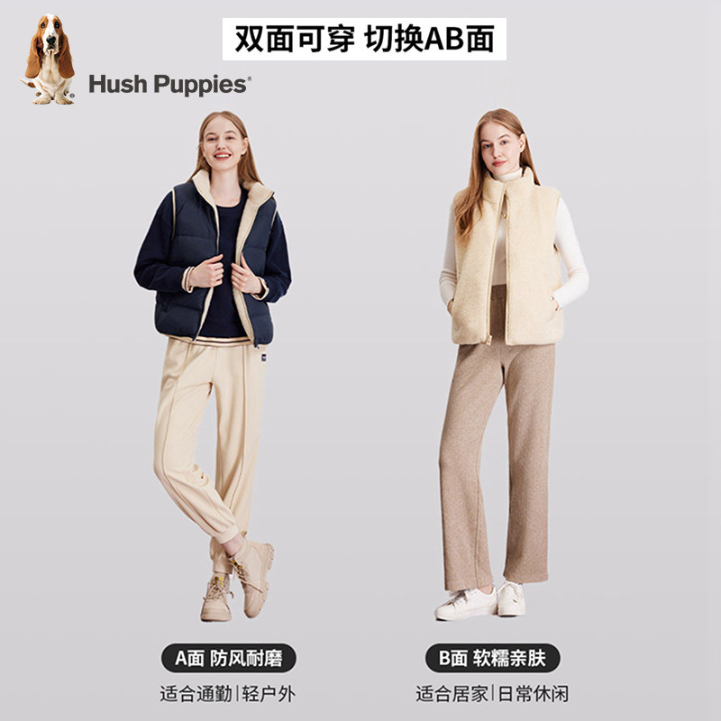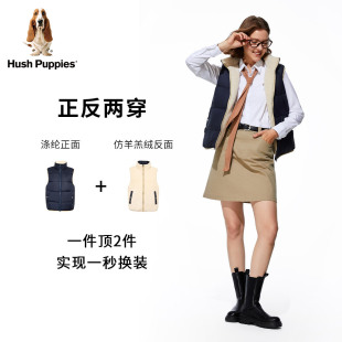 秋冬双面穿仿羊羔毛百搭保暖立领羽绒马甲 暇步士女装 正反两穿