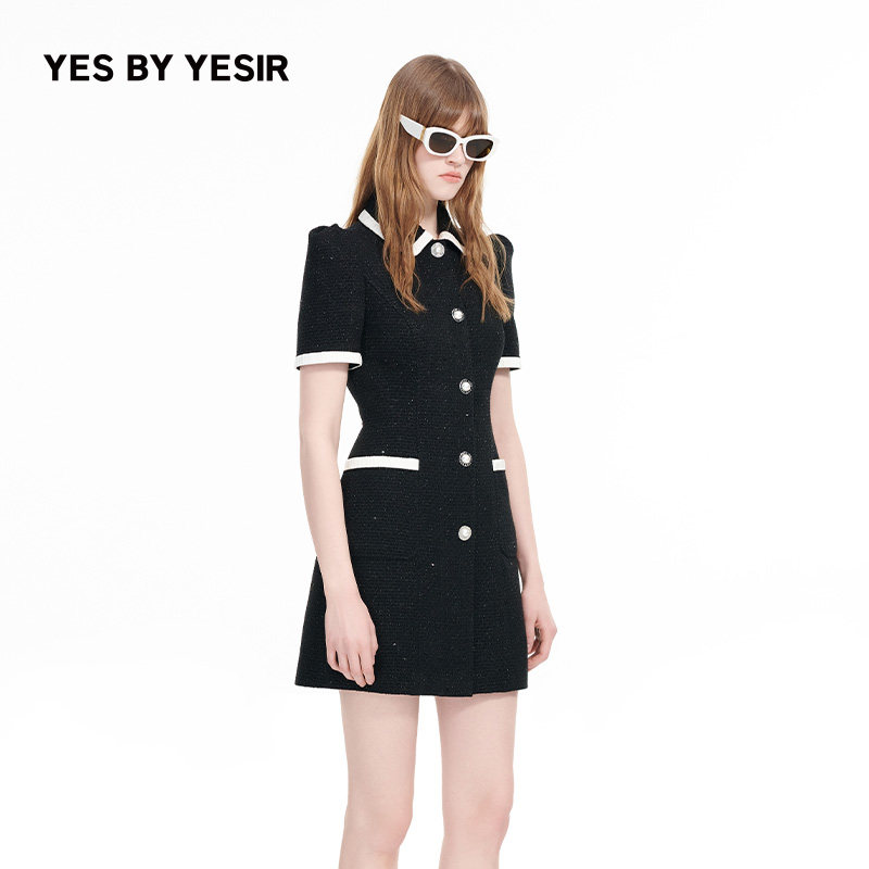 裙子浪花撞边香风连衣裙 YESIR叶谦原创设计师秋新款 YES