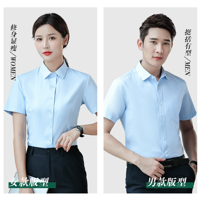 职业工装 定制长袖 白衬衣商务正装 男女士工作服棉短袖 刺绣logo 衬衫