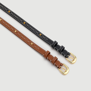 子 皮带腰带树膏牛皮小众时髦百搭裤 真皮凯旋门皮带法式 复古CE女式