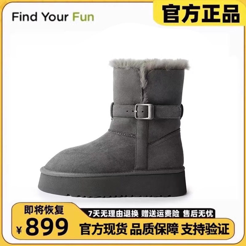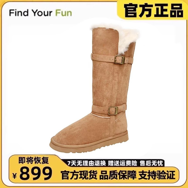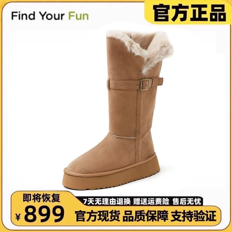 长靴 加绒加厚中筒保暖棉鞋 桑坡羊皮毛一体厚底骑士雪地靴女款 冬季