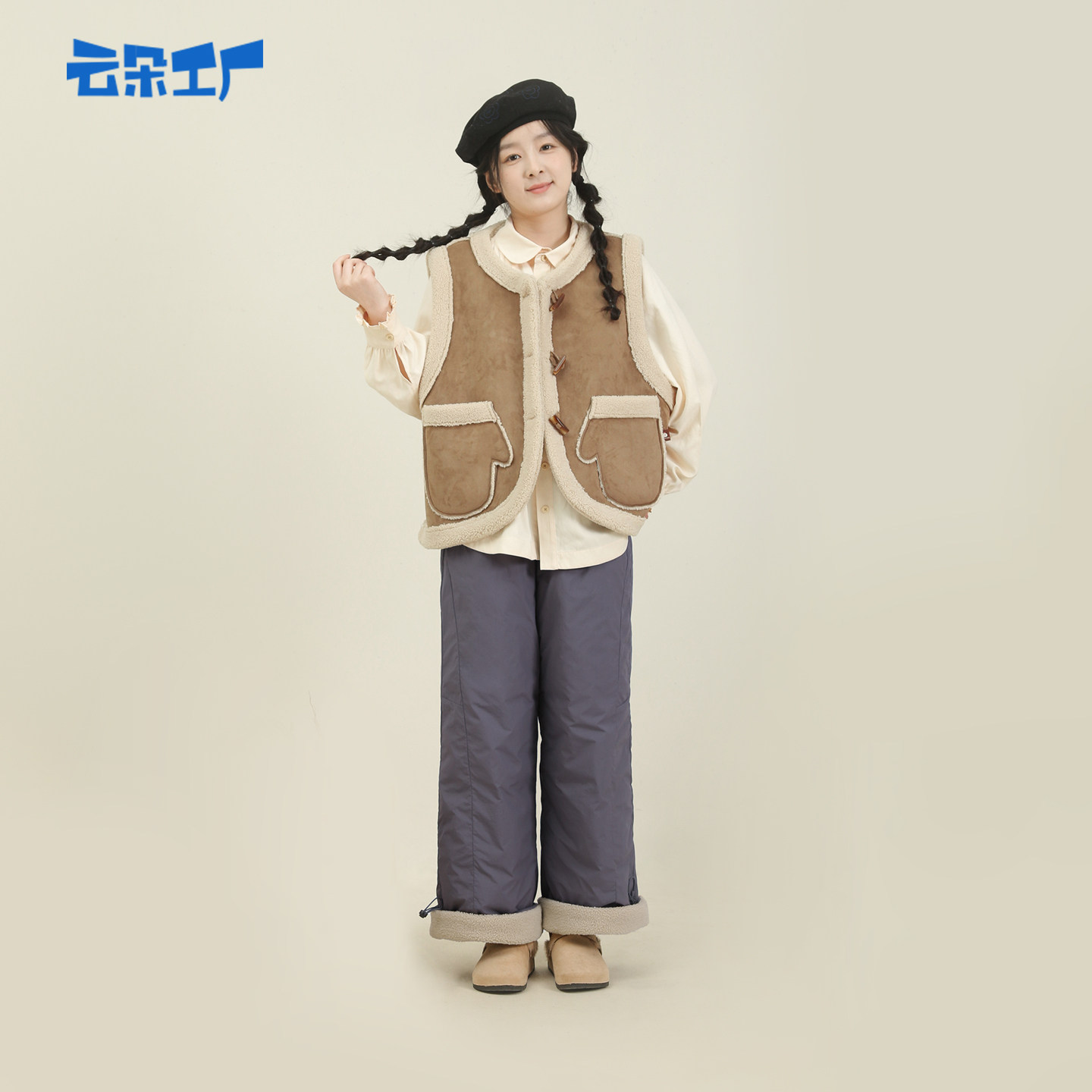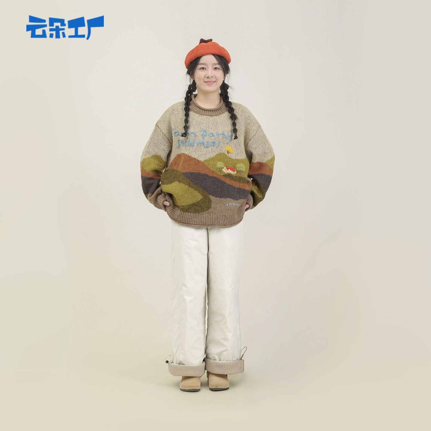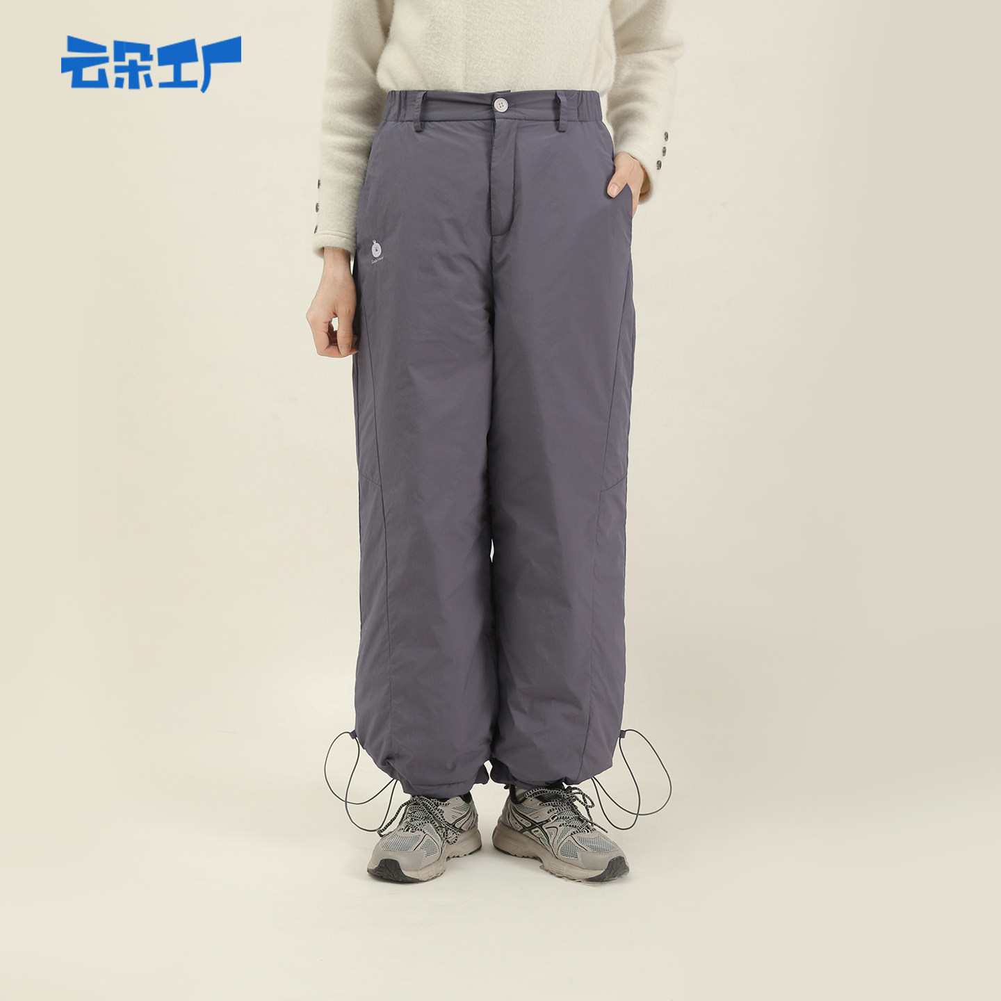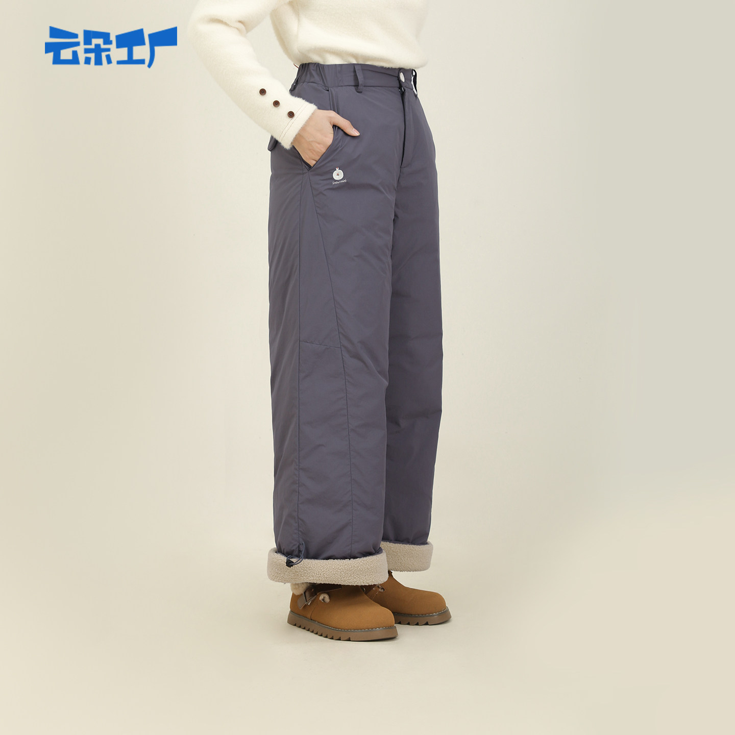 新款 高腰加厚保暖长裤 冬季 云朵工厂小雪人毛绒翻边羽绒裤