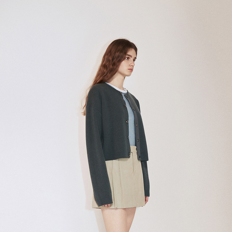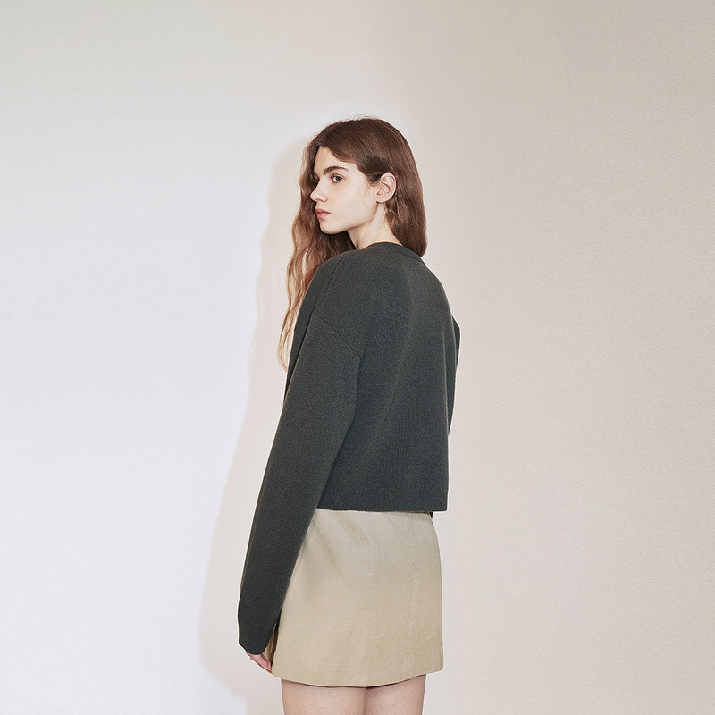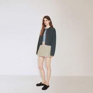 新品 气质2024秋季 100%澳大利亚羊毛针织外套女开衫 OCHIRLY欧时力