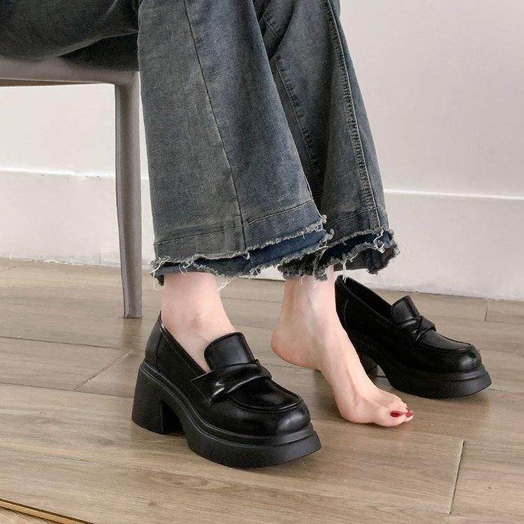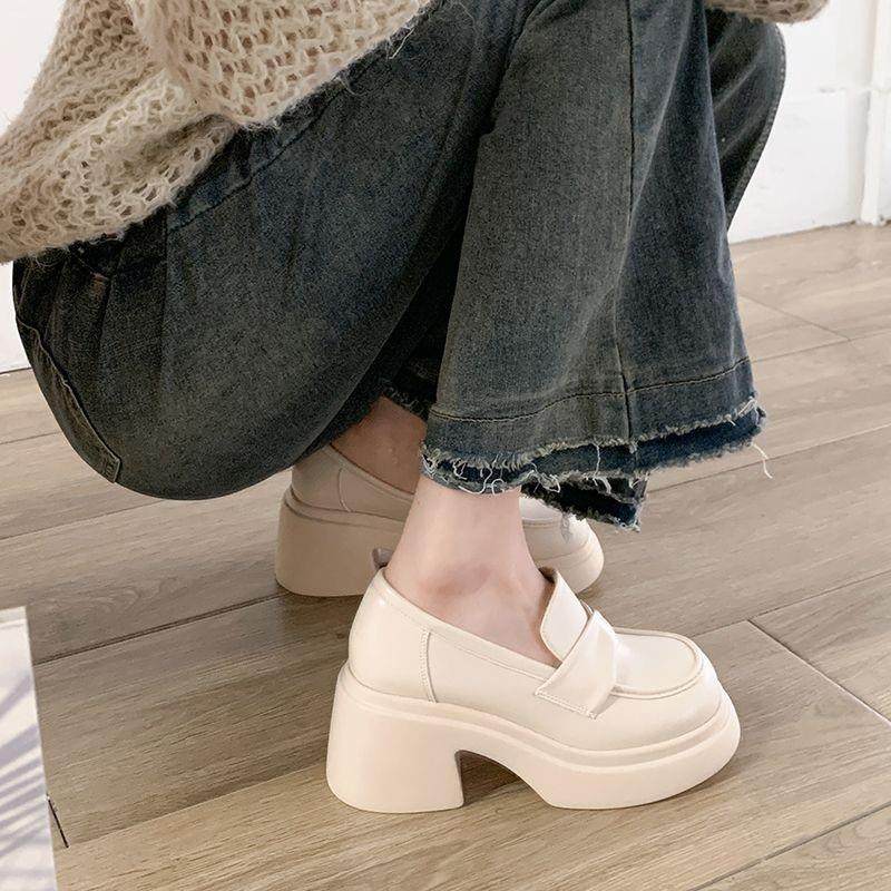 女2027年春季 一脚蹬单鞋 新款 复古英伦风乐福鞋 松糕法式 厚底小皮鞋