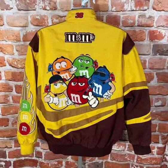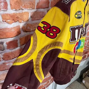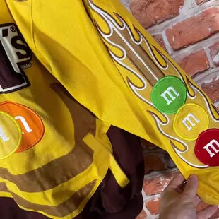 美国代购 古着收藏简约彩色m豆图案赛车夹克飞行员外套 Jacket㊣