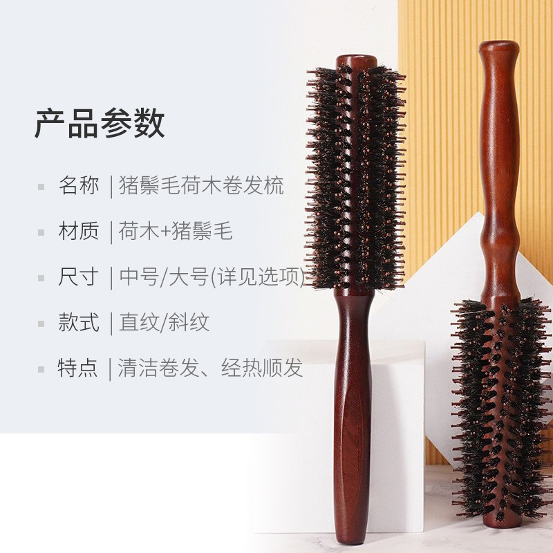 清洁卷发梳猪鬃毛荷木耐热顺发直发造型化妆师专用美发梳子 包邮