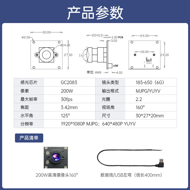 OV5645视频采集DVP模块MIPI摄像头模组USB免驱FFAF宠物监控投喂器