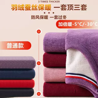 套装 妈妈本命年酒红色保暖内衣套装 女加绒加厚羽绒蚕丝中老年冬季