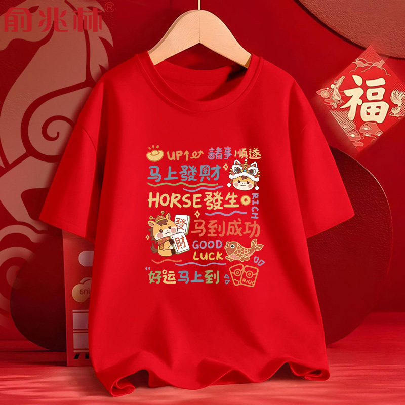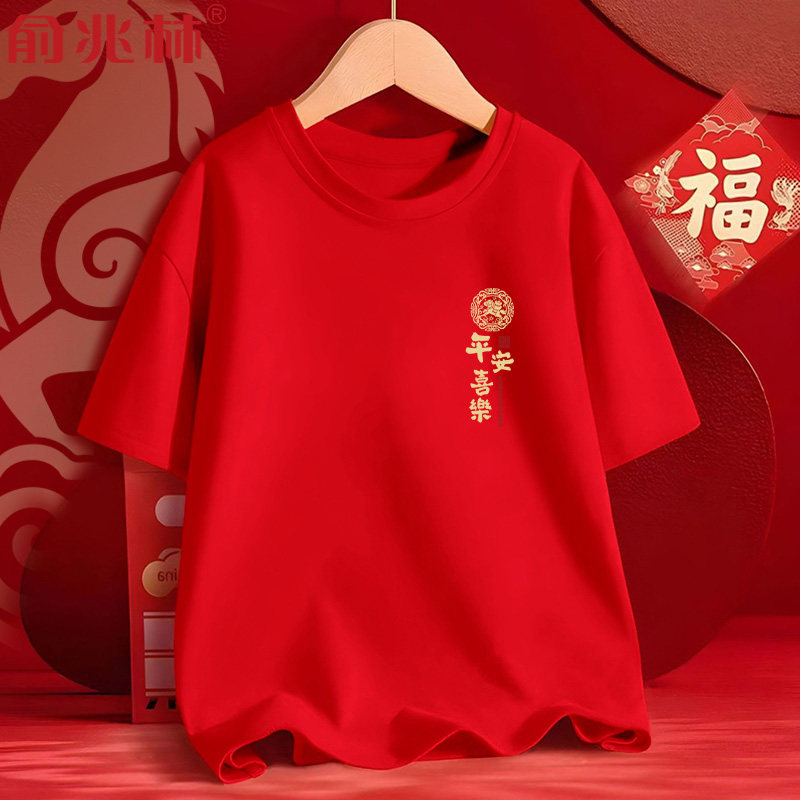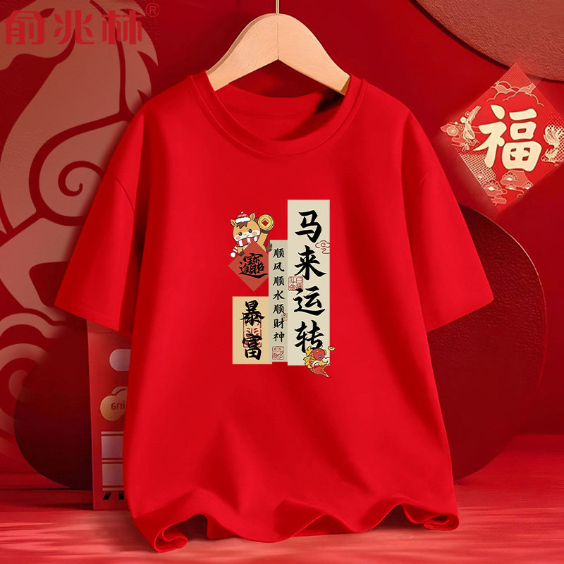 旦定制表演团队上衣 年会跨年元 马年本命年衣服短袖 t恤男红色半袖
