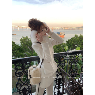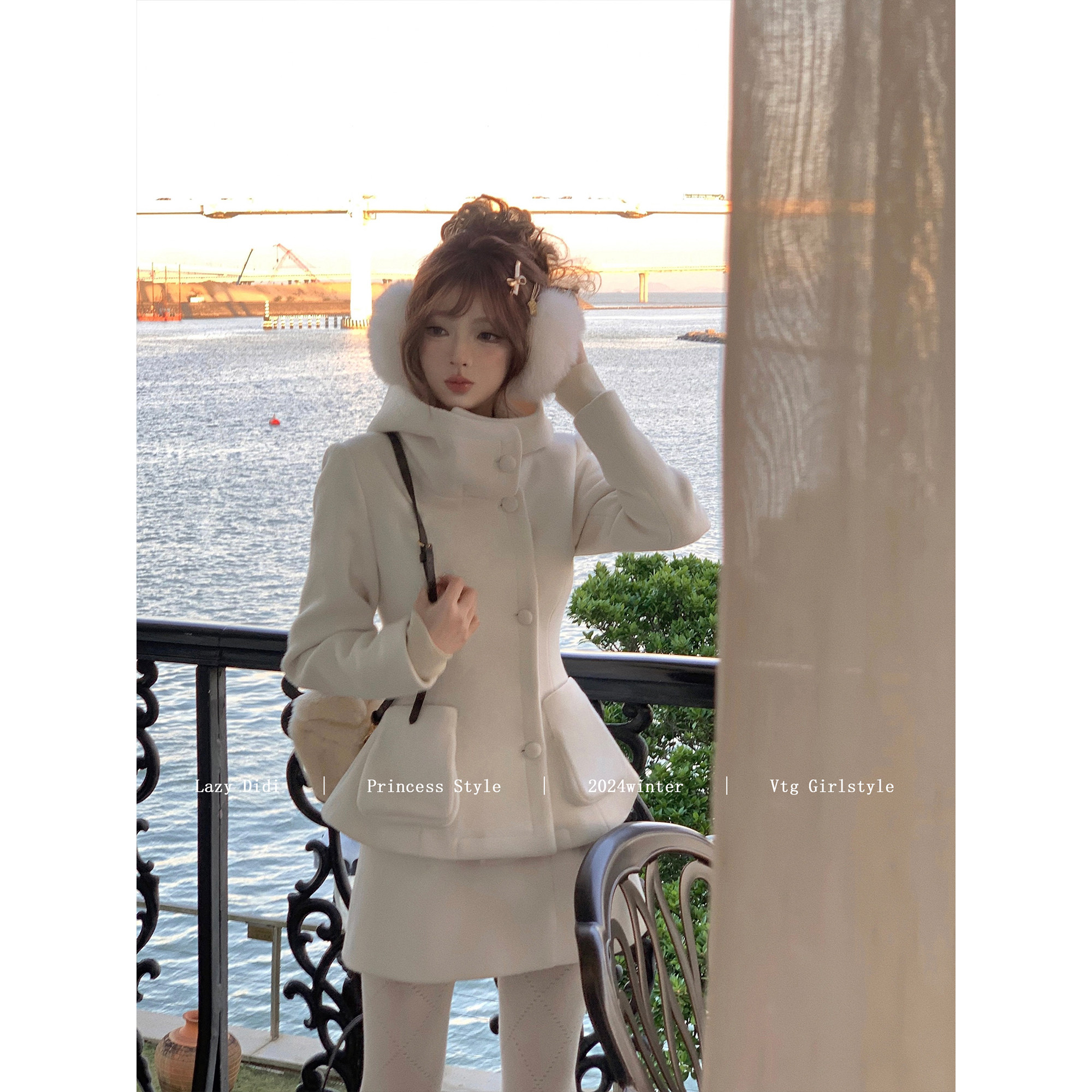 掐腰中古套装 八片式 高领毛呢外套半裙两件套 Didi西西里日报 Lazy