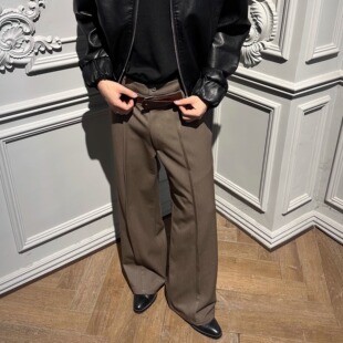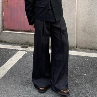 ICE UP重磅廓形立体打褶抗皱A字形弯刀阔腿休闲羊毛混纺双腰西裤