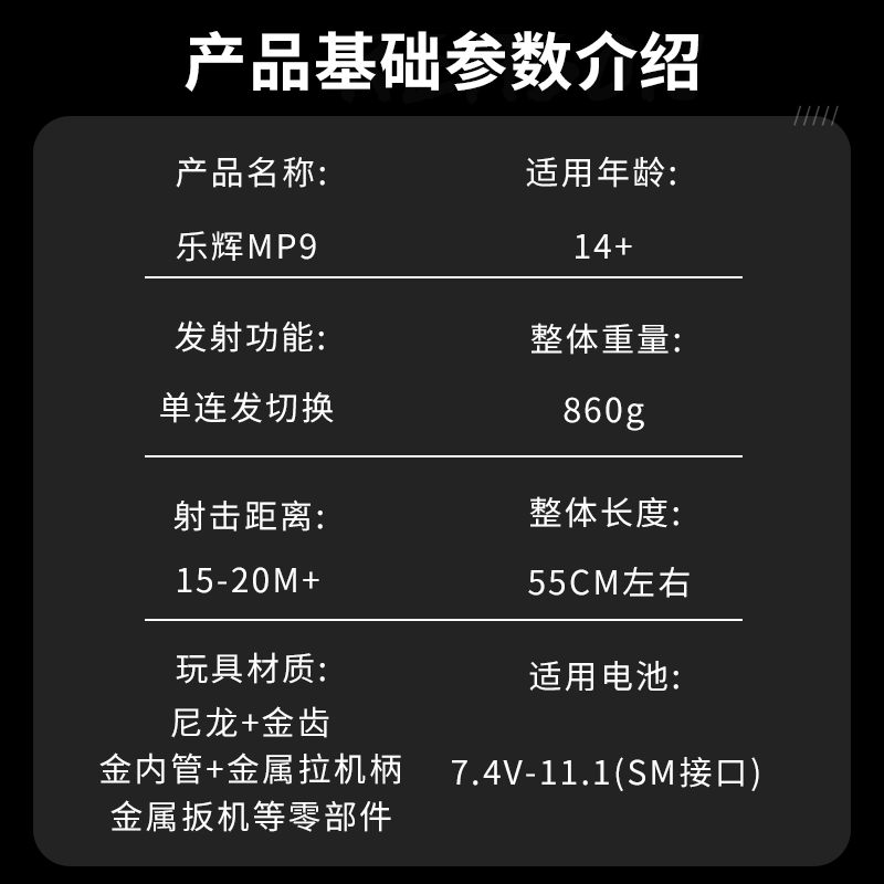 乐辉二代mp9电动连发真人cs成人仿真冲锋突击枪男孩儿童玩具枪mpx