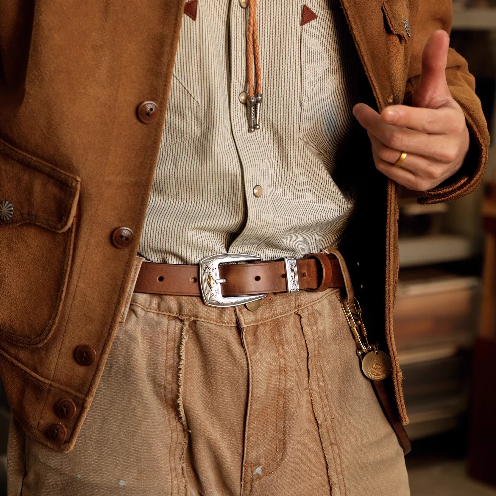 美国Horween霍尔文进口牛皮美式 复古风皮带阿美咔叽西部牛仔腰带