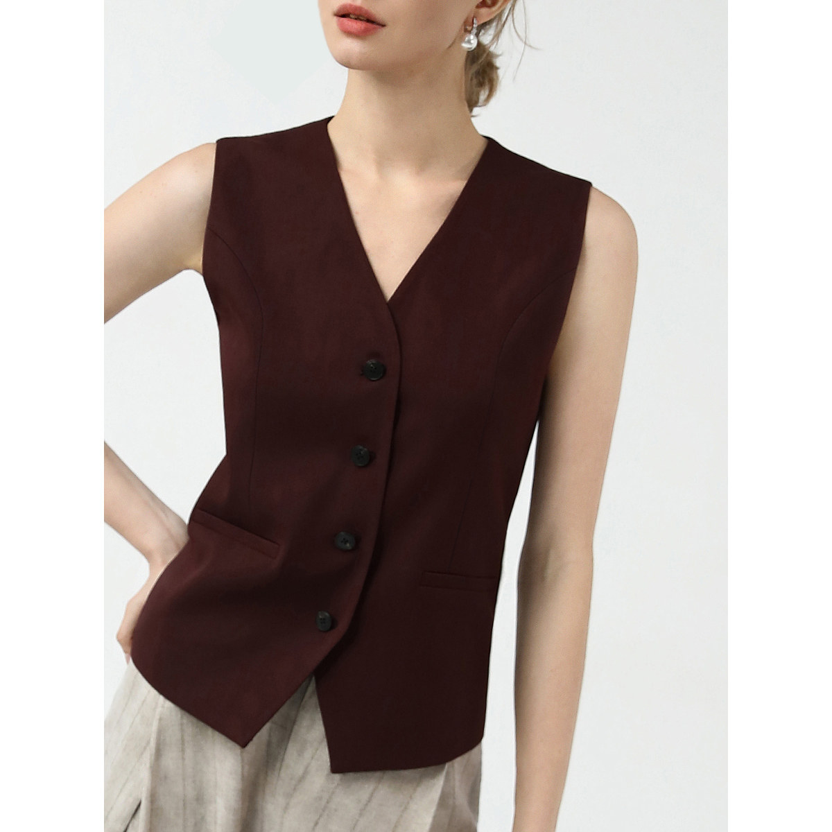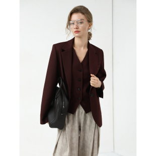 COCOBELLA安可拉红无领西装 风马夹简约气质通勤休闲马甲WS7007