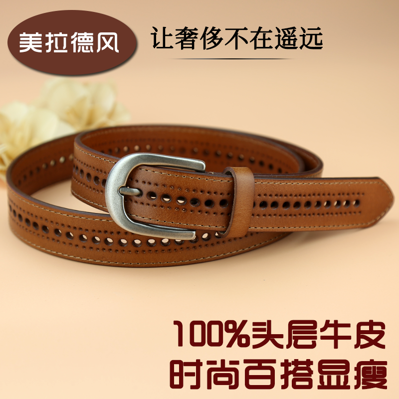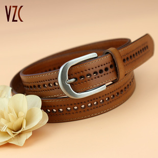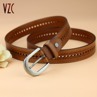 带 饰配裙牛仔裤 皮带女生真皮头层纯牛皮复古美式 棕咖色腰带镂空装
